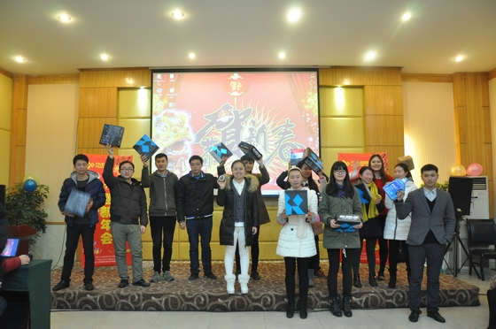 隨著年會接近尾聲,我們公平公正的評委組也選出了此次年會團隊表演前三甲和個人表演前三甲,并由王總親自頒獎。自此,長達一天的新年聯(lián)歡會也落下了帷幕。每個人都抽到了屬于自己的獎品,或大或小都已不重要,重要的是這種充滿激情、充滿活力的團隊,已將大家?guī)肓诵碌呐_階。